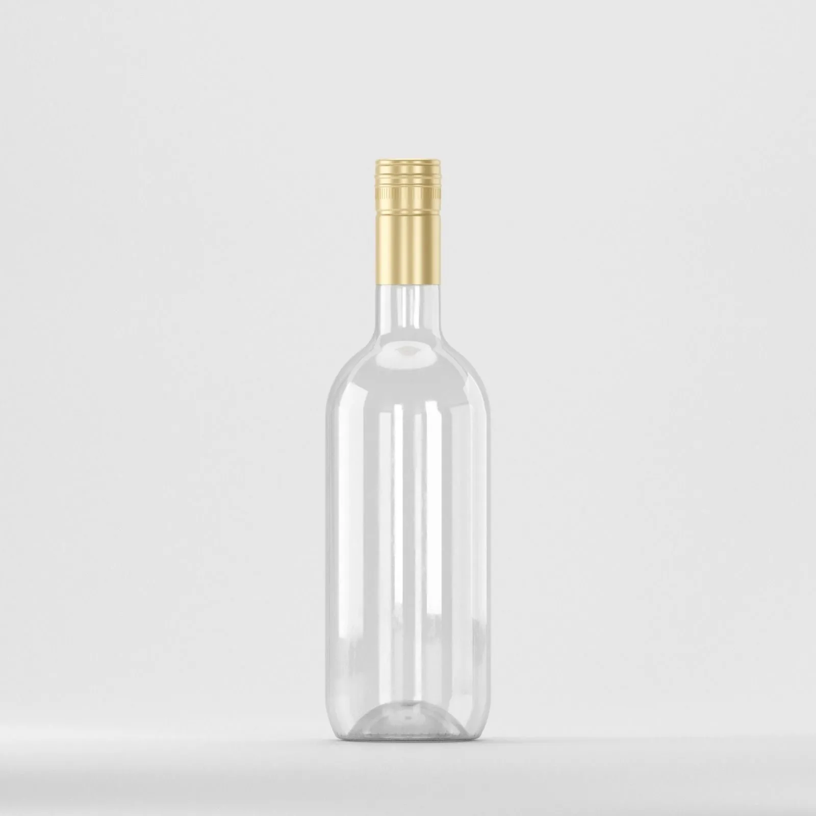 Flacon rotund de 750 ml, realizat din PET transparent de înaltă claritate, destinat îmbutelierii băuturilor Este prevăzut cu un capac filetant auriu de 28 mm care asigură etanșeitate perfectă și adaugă un detaliu rafinat produsului final. Forma sa echilibrată și transparența materialului conferă un aspect premium, potrivit pentru băuturi artizanale și produse cu prezentare elegantă.