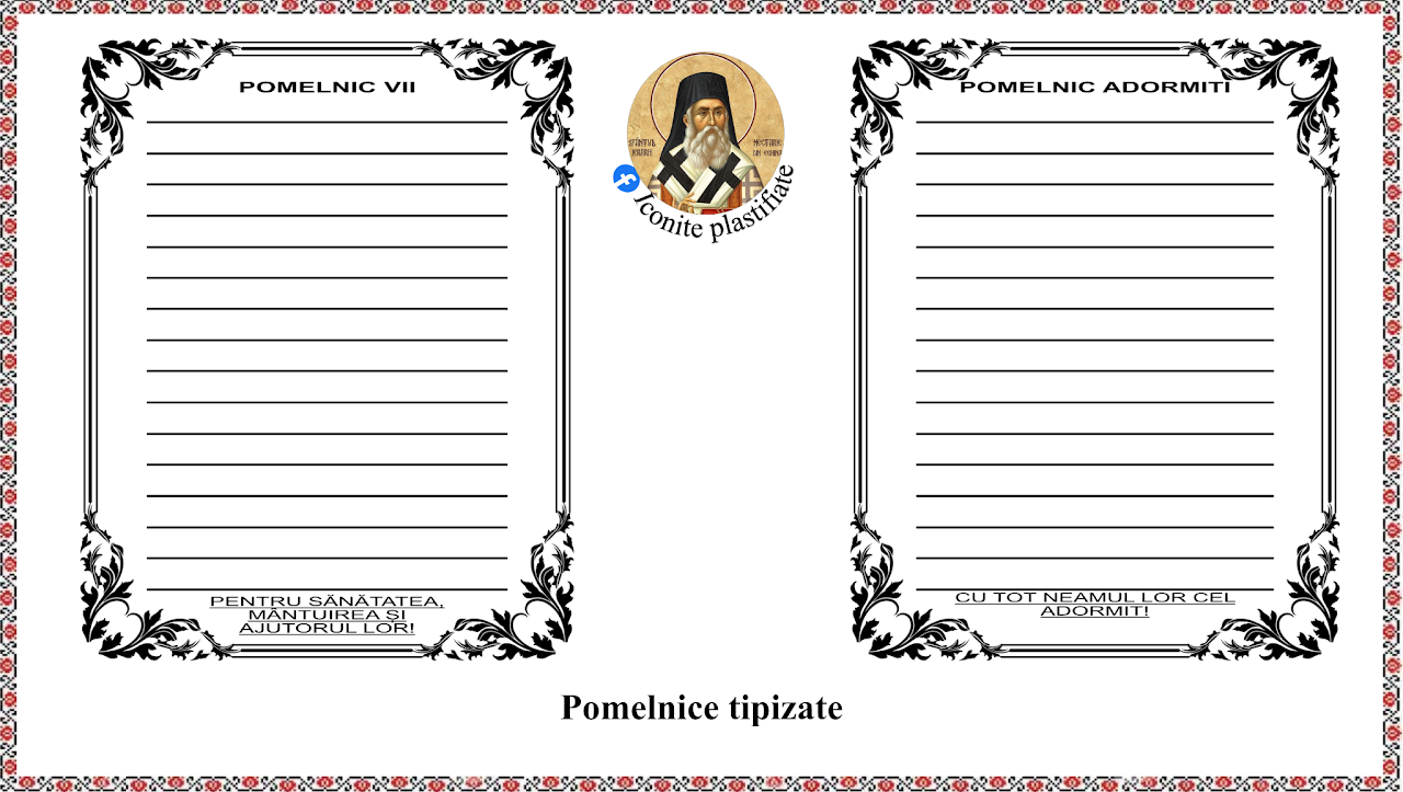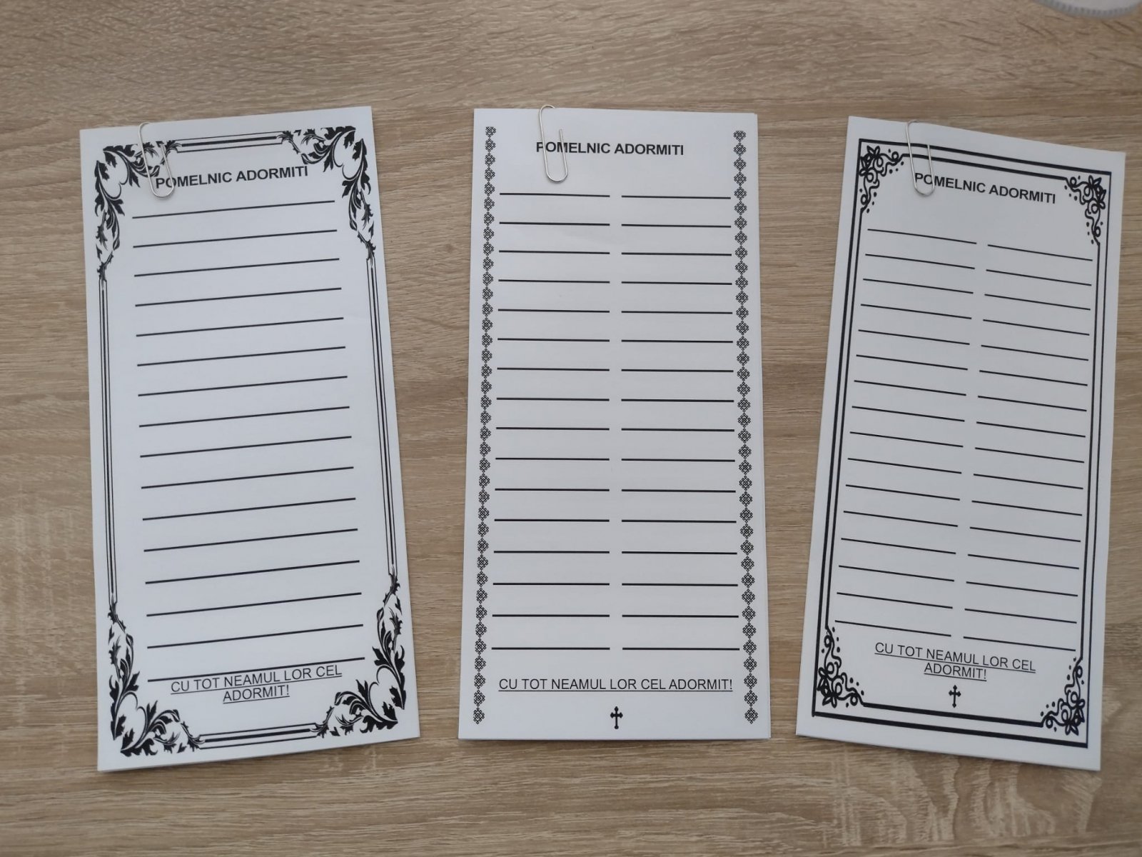Pomelnic tipizat individual. Se pot realiza la dimensiunea de 10*15 cm sau 15*21 cm.