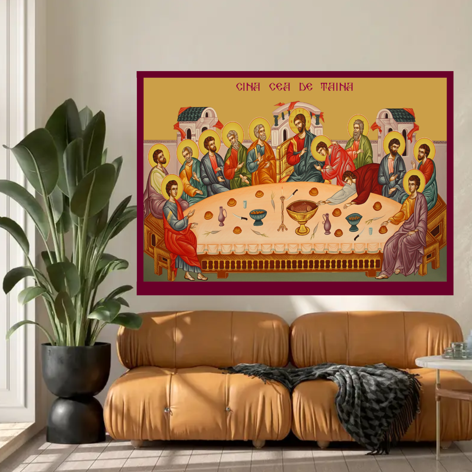Aceasta icoana este un dar spiritual de mare valoare, potrivita pentru a aduce in casa ta amintirea Cinei Domnului si chemarea la comuniune cu Hristos. Prin tehnologia UV, icoana isi va pastra frumusetea si intensitatea culorilor in timp, fiind un simbol pretios al credintei si al unitatii crestine.